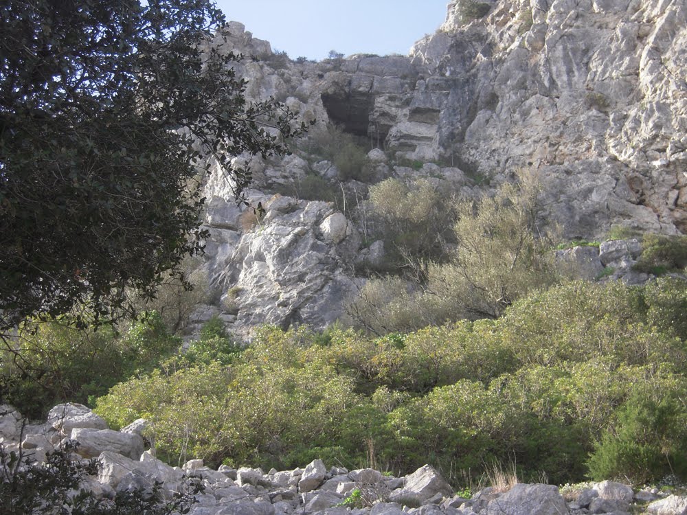 4. A cerca de 100 m a Oeste da gruta, no único caminho que permite o acesso ao mar, antes de uma cascalheira, regustámos um pequeno abrigo, com cerâmica manual, protohistórica, no interior e nas imediações.